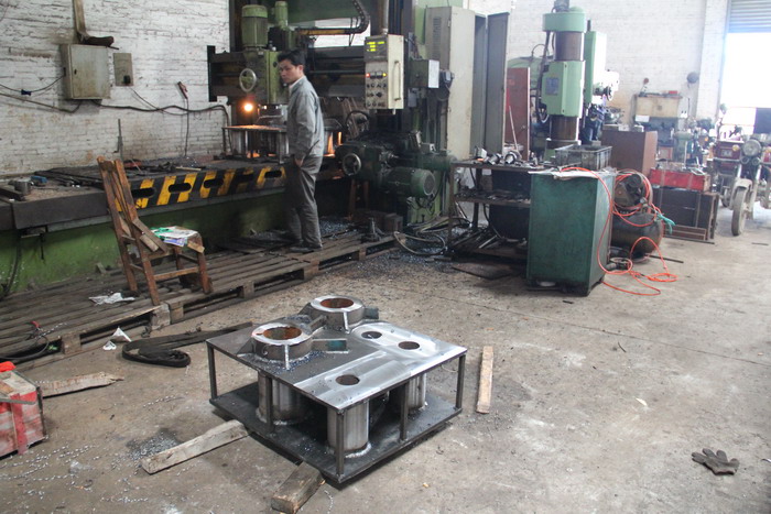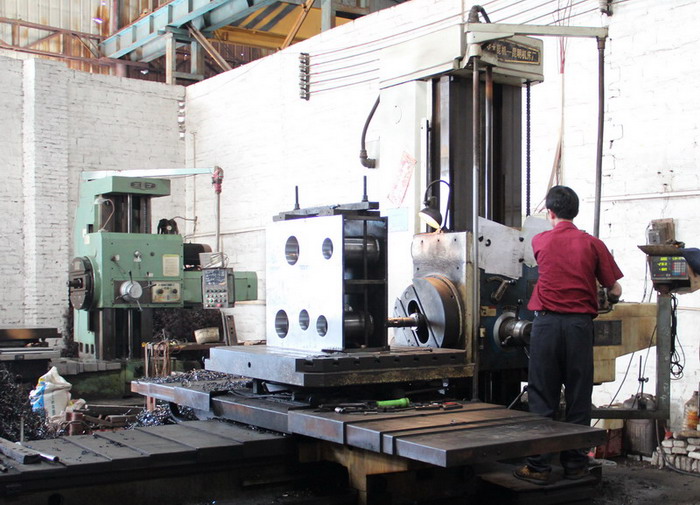 機械的整個主軸箱采用12厚的鋼板焊接成型
